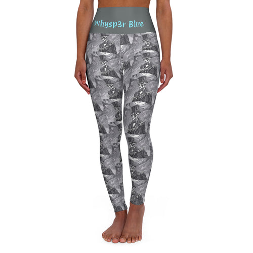 High-Waisted Yoga Leggings — Whysp3r Blue Grayscale Photo Collage Activewear